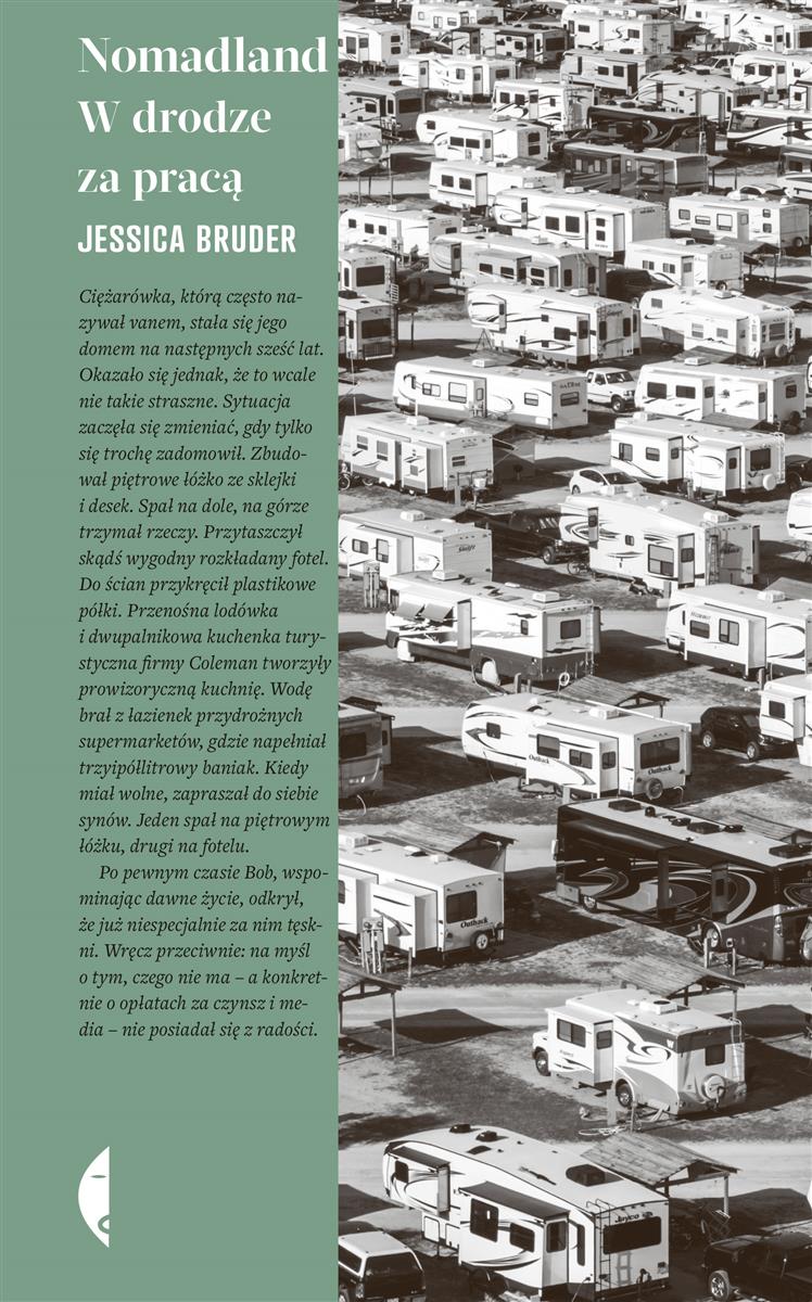 Ich oszczędności wyparowały po kryzysie w 2008 roku lub z powodu różnych życiowych wypadków. Zamiast przejść na zasłużoną emeryturę, żegnają się z wygodnym życiem przedstawicieli klasy średniej, które wiedli dotąd. Sprzedają domy, bo nie mogą ich już utrzymać, przesiadają się do kamperów, przyczep, vanów czy pikapów i ruszają w drogę. Jeżdżą od stanu do stanu w poszukiwaniu dorywczej pracy ? na kempingach, przy zbiorach owoców i warzyw, w centrach logistycznych Amazona.