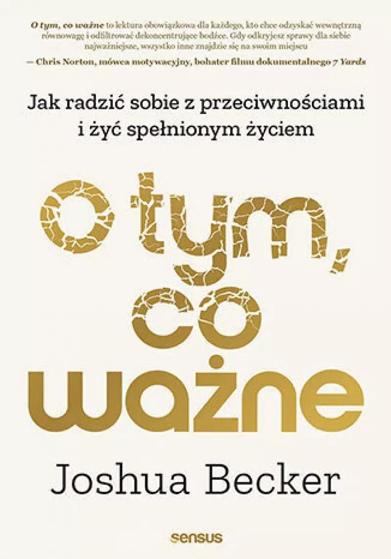Dzięki tej książce:określisz, co dla Ciebie jest najważniejszezaczniesz poważnie traktować swoje najskrytsze marzeniadostrzeżesz, jak pieniądze i dobytek modelują Twoje poczucie szczęściauświadomisz sobie, jak cudze opinie wpływają na Twoje wyboryporzucisz błędy z przeszłości i wyniszczające nawykiJak dotrzeć do kresu dni, by nie mieć powodó,w do żalu? ,O tym, co ważne to lektura obowiązkowa dla każdego, kto chce odzyskać wewnętrzną ró,wnowagę i odfiltrować dekoncentrujące bodźce. Gdy odkryjesz sprawy dla siebie najważniejsze, wszystko inne znajdzie się na swoim miejscu ,.