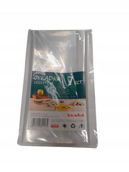 okładki przeźroczyste 7 szt na zeszyty A5 w pełni transparentne - nie zasłaniają grafiki na okładkach, nadają się do zeszytów z miękka i twardą okładką, chronią przed zabrudzeniem i wilgocią, bezbarwne zakładki, uskok zapobiegający zaginaniu się okładki, wykonano z foli ekologicznej - wyrób wolny od ftalanów oraz metali ciężkich, produkt zgodny z rozporządzeniem REACH, materiały: folia ekologiczna, certyfikat bezpieczeństwa i jakości, polski producent BIUROFOL.