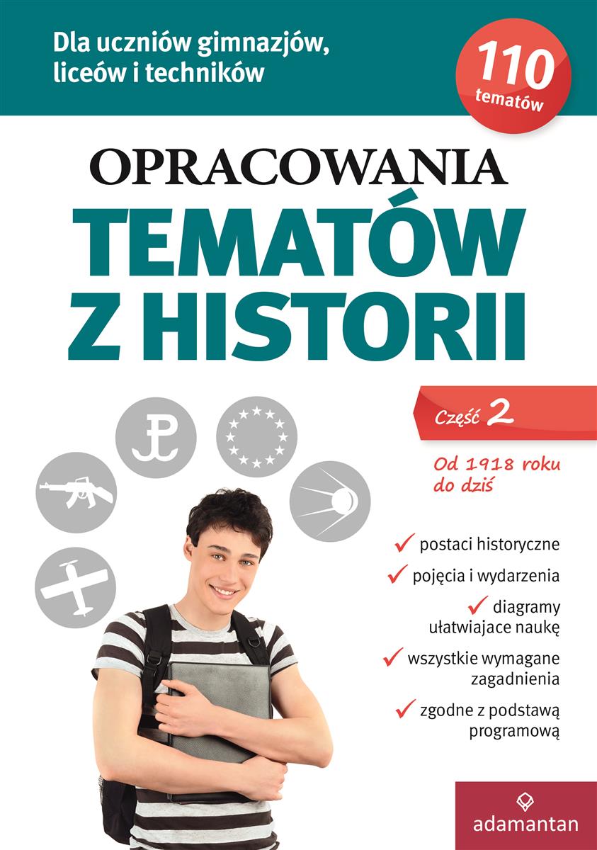 Książka uzupełniająca dowolny podręcznik, zawiera napisane przez doświadczonych nauczycieli opracowania 110 tematów z historii. Uwzględnione zostały wymagania szkolne oraz obowiązujące standardy egzaminacyjne. W każdym opracowaniu przedstawiono najważniejsze wydarzenia, wymieniono czynniki, które wpłynęły na ich przebieg, zwięźle ukazano ich skutki i znaczenie. Ułatwieniem w nauce są krótkie definicje pojęć, których znajomość jest wymagana przy każdym temacie, spis postaci, które się z nim wiążą, zestawienie dat, które trzeba zapamiętać, a także diagramy, pomagające powiązać ze sobą różne fakty.