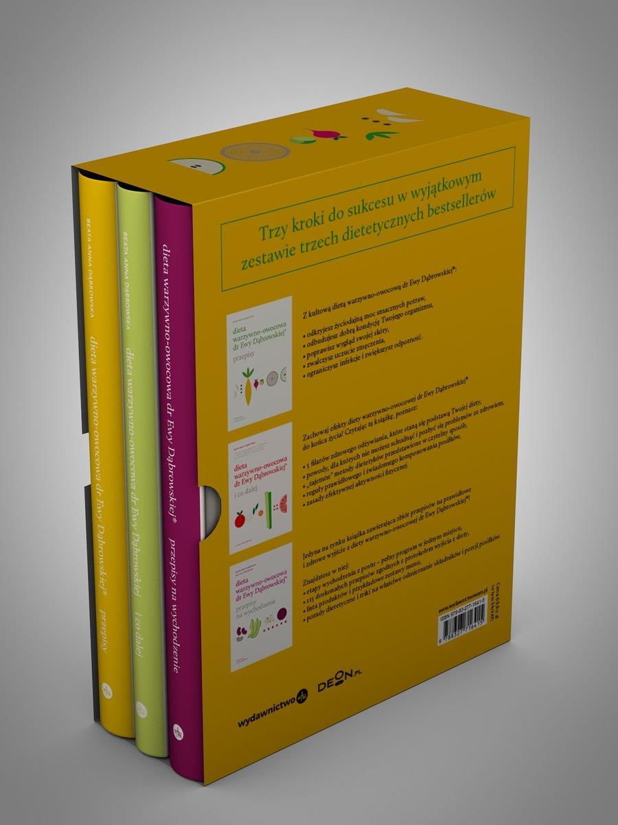 Trzy kroki do sukcesu w wyjątkowym zestawie trzech bestsellerów dietetycznych:Dieta warzywno-owocowa dr Ewy Dąbrowskiej. Przepisy,Dieta warzywno-owocowa dr Ewy Dąbrowskiej. Przepisy na wychodzenie,Dieta warzywno-owocowa dr Ewy Dąbrowskiej(R) i co dalej.