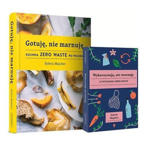 Gotuję, nie marnuję. Kuchnia Zero Waste po polsku:Czy wiesz, że do śmietników na całym świecie trafia 1.3 miliarda ton żywności rocznie? Polacy produkują ponad 280 kg śmieci na osobę rocznie! Sylwia Majcher, dziennikarka i blogerka, przekonuje, że resztki zamiast do kosza mogą trafić na talerze.Filozofia Zero Waste staje się coraz popularniejszym nurtem, a coraz więcej osób decyduje się świadomie minimalizować produkcję odpadów w swoim życiu. Korzystając z kreatywnych koncepcji na niemarnowanie jedzenia, przyczynisz się do dbania o środowisko oraz odczujesz zmianę na plus w swoim portfelu.W książce znajdziesz nie tylko fantastyczne przepisy na dania z resztek, ale także pomoc w planowaniu jadłospisu i układaniu listy zakupów. Dowiesz się, jak ograniczyć kupowanie za dużej ilości jedzenia, a także jak najlepiej przechowywać produkty spożywcze. Co i jak mrozić, kisić, pasteryzować, suszyć i jak odczytywać datę ważności konkretnych pokarmów – aby tylko nie wyrzucać! Wykorzystuję, nie marnuję:Zmiana codziennych nawyków może być prosta i przyjemna! Rozpocznij pozytywne dla siebie i środowiska zmiany w swoim życiu z ekoplanerem! Znajdziesz w nim cotygodniowe ekowyzwania na cały rok, dzięki którym metodą małych kroków systematycznie i efektywnie wprowadzisz dobre zmiany w duchu zero waste w swoim życiu. Sylwia Majcher, autorka bestsellerowej książki Gotuję, nie marnuję. Kuchnia zero waste po polsku pomoże stworzyć indywidualny i dopasowany do subiektywnych potrzeb projekt zmian. W książce znajdziesz jeszcze wywiady z ekspertami (psychologami, wykładowcami, aktywistami), przydatne tipy i ciekawe rozwiązania na czas podróży, podczas codziennych dni w pracy, w domu, w kuchni, w szkole. Pełno tu także przepisów na smaczne dania sezonowe i podpowiedzi, jak gotować, aby niczego nie zmarnować. Wykorzystuję, nie marnuję to doskonała propozycja dla tych, którzy chcieliby wprowadzić pozytywne dla siebie oraz dla środowiska zmiany w swoim życiu. Planer został podzielony na cztery części zgodnie z porami roku, by jeszcze lepiej odpowiadać indywidualnym potrzebom. Możesz zacząć go uzupełniać, kiedy tylko chcesz!