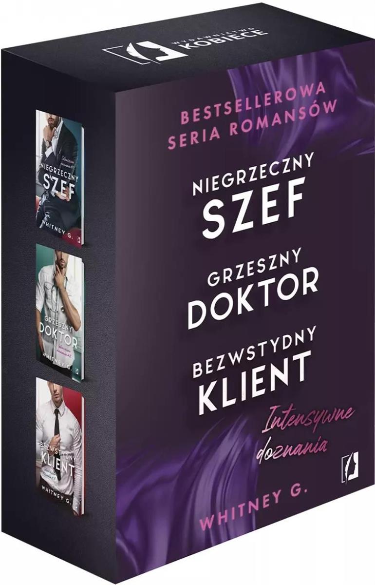 Bezwstydny klient. Ostatni czas nie był dla Penelope najłaskawszy. Nie dość, że straciła dwóch ważnych klientów, to jeszcze została zdradzona przez swojego partnera. Kobieta próbuje uporać się z kiepskim samopoczuciem i rzuca się w wir pracy. Z chęcią zabiera się za nowe zlecenia, dzięki którym widzi cel w życiu. W ramach odpoczynku i relaksu Penelope wybiera się na imprezę, gdzie poznaje atrakcyjnego i pewnego siebie mężczyznę. Po namiętnej nocy okazuje się, że nowo poznany przystojniak jest jej klientem... Pakiet Intensywnych doznań to trzy bestsellerowe romanse autorstwa Whitney G. - pisarki, która zyskała popularność dzięki cyklowi pt. Domniemanie niewinności oraz romansowi pod tytułem Turbulencja .