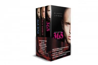 Bestsellerowa seria książek Blanki Lipińskiej 365 dni w jednym pakiecie.365 dni365 dni autorstwa Blanki Lipińskiej to seria książek, która podbiła świat! Pierwsza część serii 365 dni to soczyście opisany świat gangsterskich porachunków, w którym nie ma litości, granic ani zasad ? poza jedną: MUSISZ BYĆ MOJA.