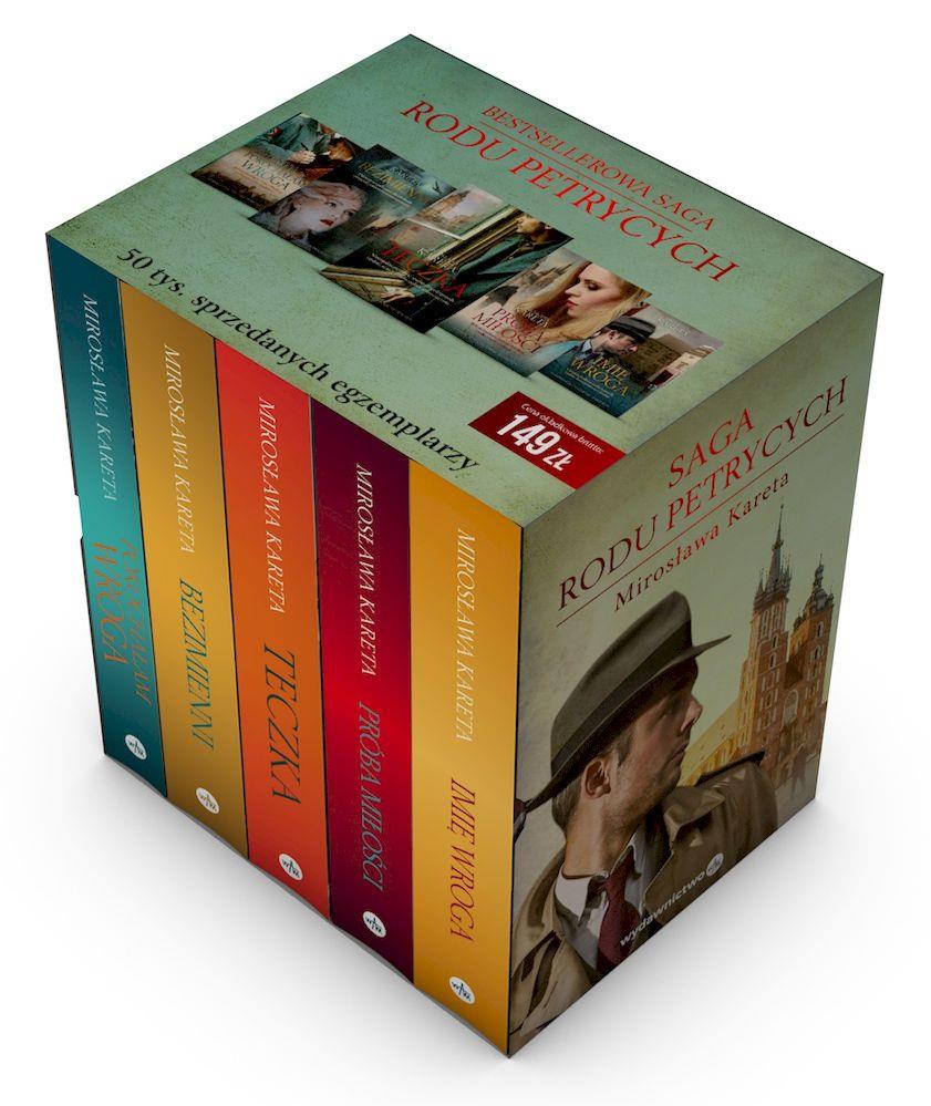 Teczka: Kolejna odsłona dziejów rodziny Petrycych ukazuje mroczną powojenną rzeczywistość i działania władz, które nie dawały człowiekowi możliwości wyboru. Opowiada o złamanych życiorysach, nieuleczonych ranach i sytuacjach, w których nawet miłość mogła okazać się fałszywym drogowskazem. Próba miłości: W czwartej części bestsellerowej sagi rodu Petrycych Autorka w mistrzowski sposób opisuje, jak budowane przez lata szczęście rozpada się w jednej chwili przez ślepe zrządzenie losu. Najtrudniejsze wydarzenia przychodzą niespodziewanie. I odmieniają nas na zawsze. Imię wroga: Ostatnia część cieszącej się niezwykłą popularnością sagi. W wyjątkowy sposób przeplatają się w niej skomplikowane rodzinne losy, miłość i wielka, często budząca kontrowersje historia. Jak zakończy się ta trzymająca w napięciu opowieść?