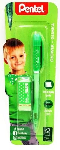 PENTEL. ZIELONY OŁÓWEK+GUMKA