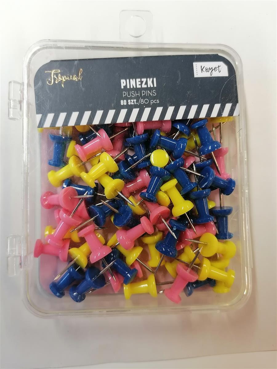 Kolorowe pinezki 80 szt. Różowe, żółte, niebieskie