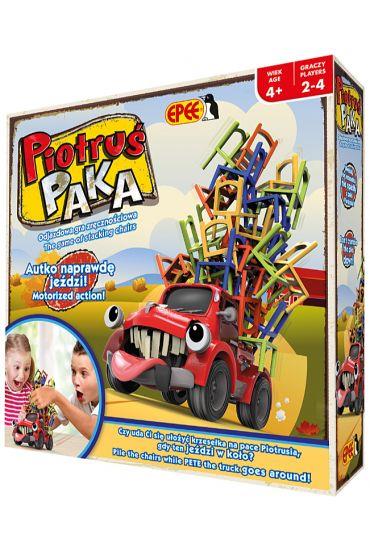 iotruś Paka to zabawne autko, które chętnie przewiezie Twoje krzesła. Ale uwaga! Musisz je wkładać na jego pakę bardzo ostrożnie ? Piotruś nie ma czasu się zatrzymywać, jest w ciągłym ruchu! Jeśli konstrukcja zawali się, przegrasz! To wspaniały trening zręczności dla małych i dużych!