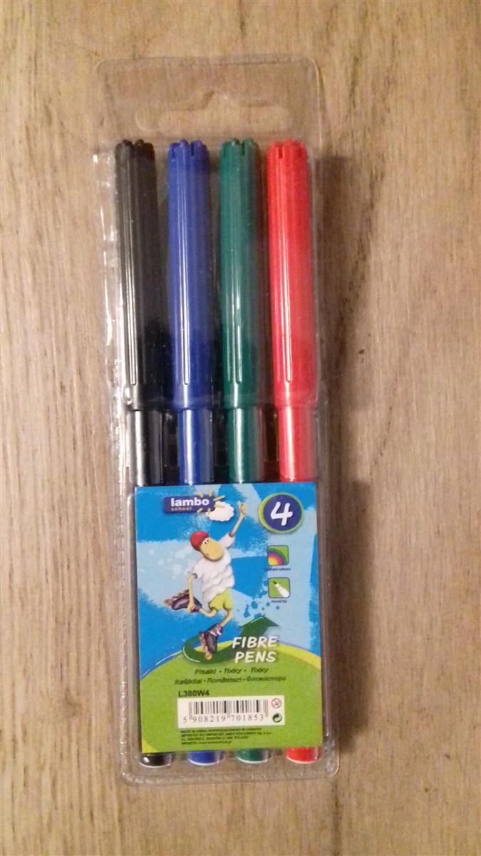 Pisaki z tuszem na bazie wody z zatyczką 4 sztuki.