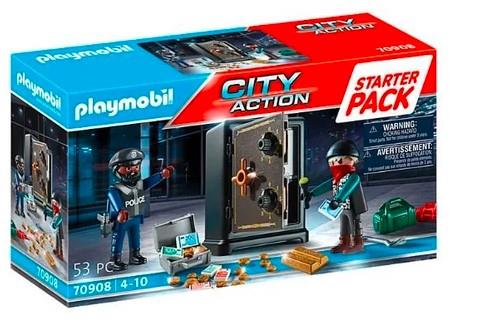 Poglądowe zdjęcie produktu. Opakowanie posiada niewielkie uszkodzenia. Playmobil City Action 70908 Starter Pack Włamanie do sejfuZestaw PLAYMOBIL City Action Policja Włamanie do sejfu. Złodziej próbują włamać się do dobrze zabezpieczonego sejfu.