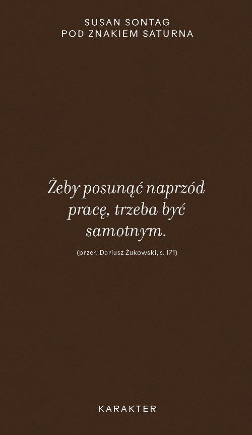 Susan Sontag. Urodziła się w 1933 roku, zmarła w roku 2004. Jedna z najważniejszych intelektualistek dwudziestego wieku. Jej znakiem rozpoznawczym były zawsze niezależność myśli i pełne pasji zaangażowanie. Autorka ważnych tekstów, które podważały przyjęte sposoby myślenia i wyznaczały nowe horyzonty humanistyki: Przeciw interpretacji, O fotografii, Zapiski o kampie, Choroba jako metafora. Pisała także powieści, m.in.: Zestaw do śmierci, Miłośnik wulkanów, W Ameryce. Obrończyni praw człowieka, występowała przeciw wojnie w Wietnamie, w czasie stanu wojennego wspierała ?Solidarność , a w 1993 roku w oblężonym Sarajewie wystawiła Czekając na Godota. Zawsze niepokorna, odważna i nieznosząca schematycznych uproszczeń, w ostrym tekście sprzeciwiła się propagandzie uprawianej przez rząd Busha po atakach z 11 września.