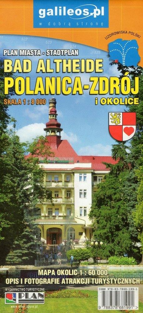 Kolejne wydanie planu Polanicy-Zdroju obejmującego swym większą część miasta. Duża skala pozwala odczytać z planu wszystkie szczegóły niezbędne dla każdego turysty. Na rewersie zawarto bogaty opis turystyczny w języku polskim i niemieckim najważniejszych atrakcji w mieście i okolicy wraz ze zdjęciami. Dodatkowo na rewersie znajduje się mapa okolic Polanic-Zdrój w skali 1:60 000 z zaznaczonymi najważniejszymi atrakcjami wraz z planem Szczelińca Wielkiego. Format: 48 x 68 cm Skala: 1:8000 (plan), 1:60 000 (okolica)Egzemplarze powystawowe - mogą zawierać zbite rogi, rozdarcia, przybrudzenia, rysy.