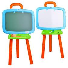 Dla dzieci rysowanie i pisanie na zwykłej kartce papieru jest nudne. Lubią wykorzystywać w tym celu wszelkie powierzchnie, które niekoniecznie nadają się do utrwalania ich radosnej twórczości. Szczególnie w oczach rodziców. Dlatego warto zaopatrzyć się specjalną tablicę. Firma Polesie ma w swojej ofercie ZESTAW ZBIOROWY ?SZTALUGA od Molto. W jego skład wchodzą: dwustronna tablica (na kredę i mazak suchościeralny), sztaluga, kredy, flamaster oraz gąbka. Produkt wykonany jest z najwyższej jakości plastiku, co gwarantuje trwałość oraz bezpieczeństwo podczas użytkowania. Egzemplarze powystawowe- opakowania mogą zawierać rozdarcia, przybrudzenia, rysy.