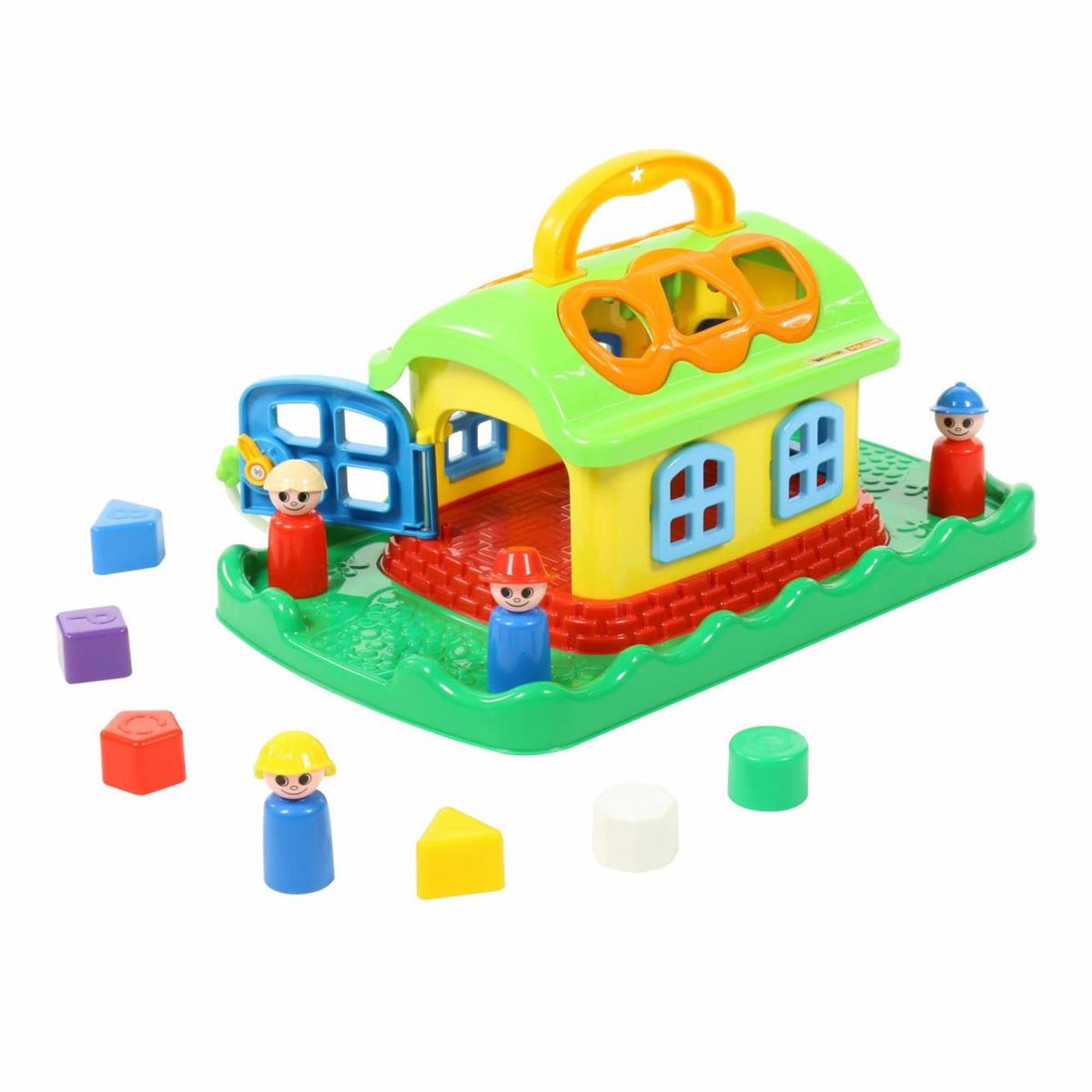 Jako sorter domek umożliwia poznanie kształtów podstawowych figur geometrycznych dzięki 6 kolorowym klockom i precyzyjnie do nich dopasowanym otworom w dachu. Dodatkowo na każdym z klocków została wytłoczona inna litera.