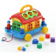 Jako sorter domek umożliwia poznanie kształtów podstawowych figur geometrycznych dzięki 6 kolorowym klockom i precyzyjnie do nich dopasowanym otworom w dachu. Dodatkowo na każdym z klocków została wytłoczona inna litera.