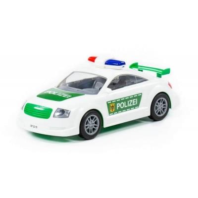 Samochód inercyjny (dziecko nim jeździ, prowadzi rączką) ""POLIZEI"", to zabawka wykonana z wysokiej jakości materiałów, co zapewni trwałość nawet podczas niebezpiecznych akcji. Wyposażony w kogut, spojler oraz szerokie opony ułatwiające poruszanie nim. Dostępny w kolorystyce biało-zielonej, zatem barwach niemieckiej policji."