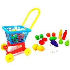 Wózek Supermarket Nr1 + Zestaw zakupowy W supermarketach dzieci z wielką chęcią przejmują od nas obowiązek prowadzenia wózków z zakupami. Wrzucają po drodze mnóstwo niepotrzebnych produktów, które my niepostrzeżenie odkładamy na półki. A gdyby taką zabawę przenieść do domu?