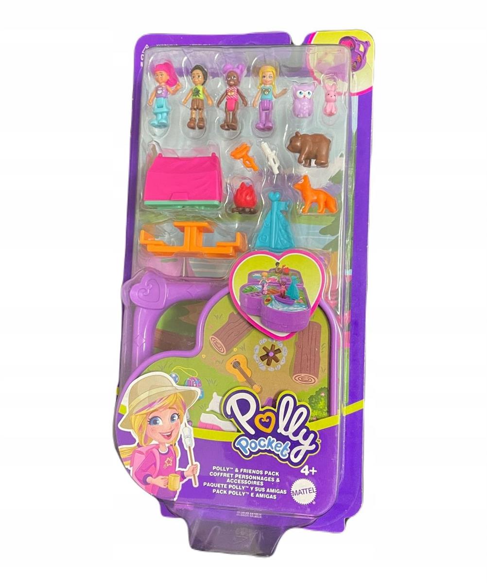 W zestawie Polly, Nicolas Wells i 2 lalki przyjaciół oraz 10 akcesoriów do przygód na kempingu (figurki lisa, sowy, króliczka i niedźwiedzia, ognisko, żaglówka, namiot, hot dogi na patyku, pianki na patyku i stół piknikowy).
