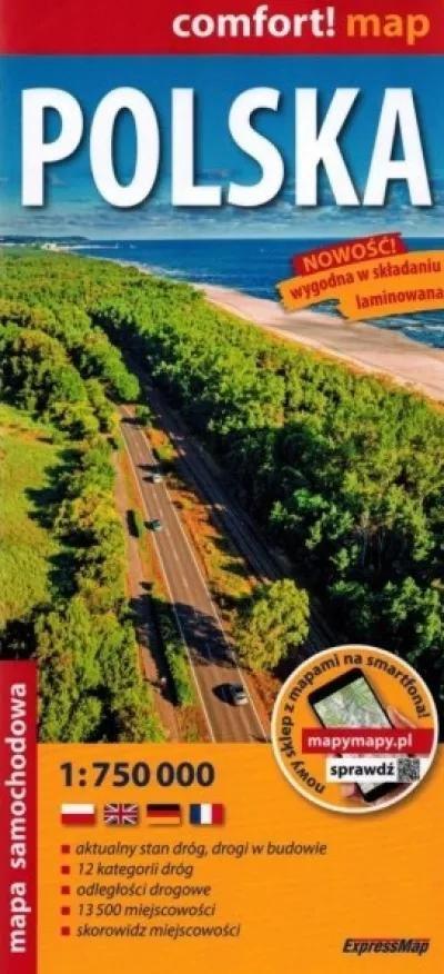 Polska; laminowana mapa samochodowa 1:750 000