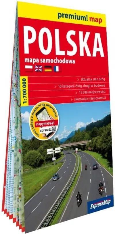 Z papierową mapą samochodową Polski w trwałej i wygodnej kartonowej oprawie podróż po kraju będzie prawdziwą przyjemnością. aktualny stan dróg, budowane autostrady, drogi ekspresowe i krajowe 10 kategorii dróg, autostrady i drogi ekspresowe wraz z węzłami odległości drogowe w kilometrach, szczegółowa numeracja dróg przejścia graniczne, promy samochodowe, międzynarodowe porty lotnicze ponad 13 500 miejscowości parki narodowe skorowidz miejscowości