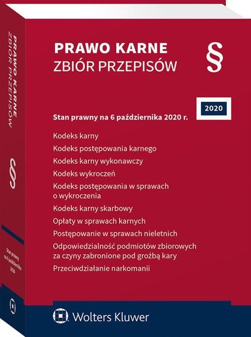 Stan prawny na 6 października 2020 r.Uwzględnia zmiany wchodzące w życie z dniem:• Kodeks karny: 25 sierpnia 2020 r. – obwieszczenie Marszałka Sejmu Rzeczypospolitej Polskiej z 15 lipca 2020 r. w sprawie ogłoszenia jednolitego tekstu ustawy – Kodeks karny (Dz.U. poz. 1444)5 grudnia 2020 r. – ustawa z 14 sierpnia 2020 r. o zmianie ustawy – Prawo o ruchu drogowym oraz niektórych innych ustaw (Dz.U. poz. 1517)• Kodeks postępowania karnego: 26 sierpnia 2020 r. – wyrok Trybunału Konstytucyjnego z 19 sierpnia 2020 r., K 46/15 (Dz.U. poz. 1458)• Kodeks karny wykonawczy: 30 lipca 2020 r. – ustawa z 11 września 2019 r. o zmianie ustawy o postępowaniu egzekucyjnym w administracji oraz niektórych innych ustaw (Dz.U. poz. 2070 ze zm.)1 stycznia 2021 r. – ustawa z 11 września 2019 r. – Przepisy wprowadzające ustawę – Prawo zamówień publicznych (Dz.U. poz. 2020 ze zm.)• Kodeks wykroczeń: 30 listopada 2020 r. – ustawa z 30 kwietnia 2020 r. o zmianie ustawy – Kodeks postępowania cywilnego oraz niektórych innych ustaw (Dz.U. poz. 956)5 grudnia 2020 r. – ustawa z 14 sierpnia 2020 r. o zmianie ustawy – Prawo o ruchu drogowym oraz niektórych innych ustaw (Dz.U. poz. 1517)18 kwietnia 2026 r. – ustawa z 5 sierpnia 2015 r. o zmianie ustawy o ochronie konkurencji i konsumentów oraz niektórych innych ustaw (Dz.U. poz. 1634)• Kodeks postępowania w sprawach o wykroczenia: 4 września 2020 r. – ustawa z 24 lipca 2020 r. o zmianie ustawy o delegowaniu pracowników w ramach świadczenia usług oraz niektórych innych ustaw (Dz.U. poz. 1423)30 listopada 2020 r. – ustawa z 30 kwietnia 2020 r. o zmianie ustawy – Kodeks postępowania cywilnego oraz niektórych innych ustaw (Dz.U. poz. 956)• Kodeks karny skarbowy: 1 lipca 2020 r. – ustawa z 28 maja 2020 r. o zmianie ustawy o podatku dochodowym od osób prawnych, ustawy o podatku od towarów i usług, ustawy o wymianie informacji podatkowych z innymi państwami oraz niektórych innych ustaw (Dz.U. poz. 1106)1 października 2020 r. – ustawa z 4 lipca 2019 r. o zmianie ustawy o podatku od towarów i usług oraz niektórych innych ustaw (Dz.U. poz. 1520 ze zm.)• Przeciwdziałanie narkomanii: 1 lipca 2020 r. – ustawa z 23 stycznia 2020 r. o zmianie ustawy o Państwowej Inspekcji Sanitarnej oraz niektórych innych ustaw (Dz.U. poz. 322 ze zm.)19 sierpnia 2020 r. – ustawa z 28 maja 2020 r. o zmianie ustawy o substancjach chemicznych i ich mieszaninach oraz niektórych innych ustaw (Dz.U. poz. 1337)1 września 2020 r. – ustawa z 14 sierpnia 2020 r. o zmianie niektórych ustaw w celu zapewnienia funkcjonowania ochrony zdrowia w związku z epidemią COVID-19 oraz po jej ustaniu (Dz.U. poz. 1493)1 marca 2021 r. – ustawa z 19 lipca 2019 r. o zmianie ustawy – Kodeks spółek handlowych oraz niektórych innych ustaw (Dz.U. poz. 1655 ze zm.)