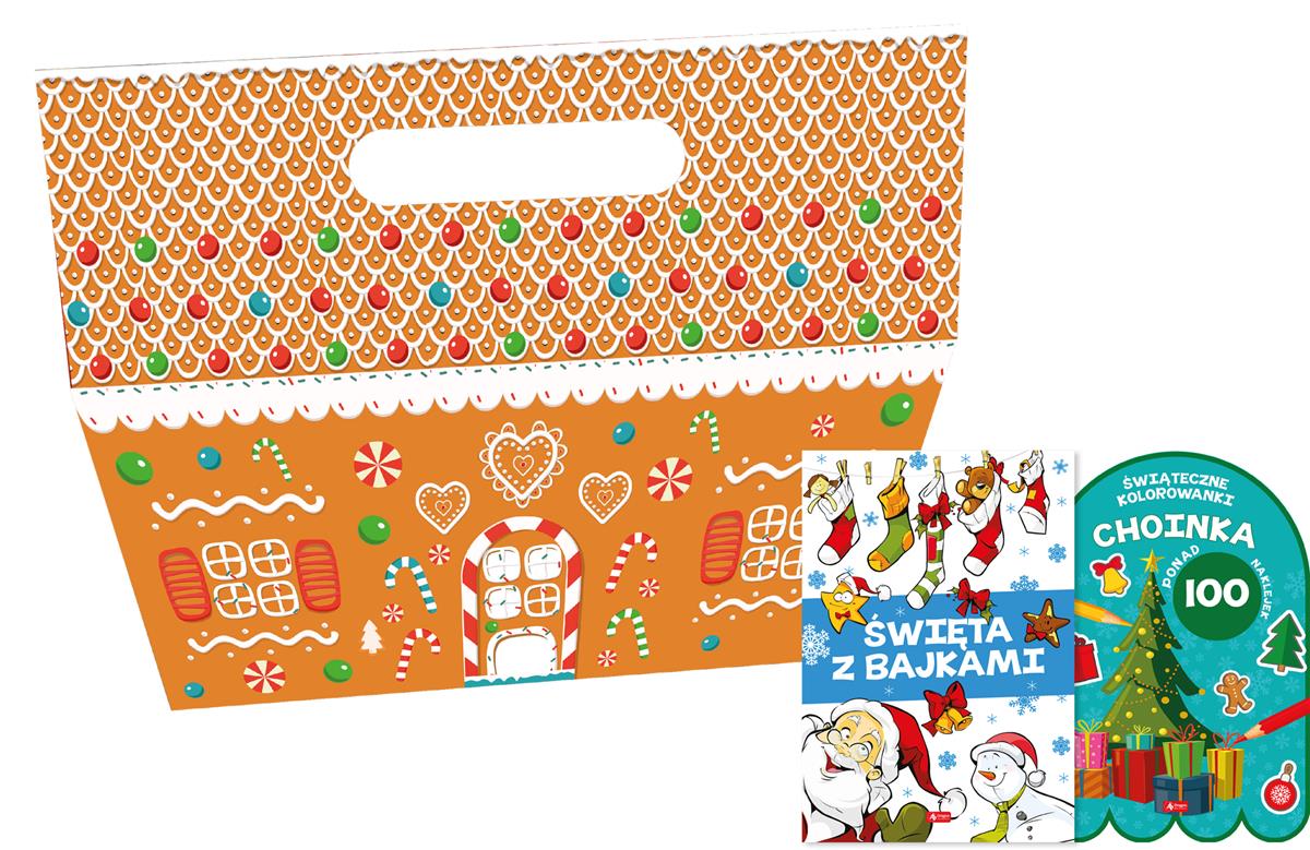 Gotowy, pomysłowy prezent na Święta dla każdego dziecka. Sympatyczne pudełko-domek kryje w sobie niespodziankę: książeczkę z bajkami lub wierszykami oraz kolorowankę z ponad 100 naklejkami. Do czytania i zabawy!