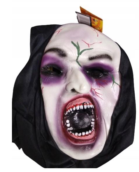 Maska ​​Zombee rozmiar uniwersalny. Maska posiada otwory na oczy, nos i usta, umożliwiając swobodne oddychanie i patrzenie.