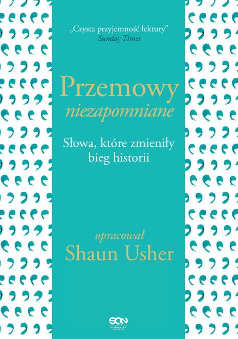 Przemowy niezapomniane to świadectwo walki o najważniejsze wartości: prawa człowieka, dostęp do edukacji, pokój i równość, a także dowód na to, że słowa mają wielką moc.?Jeśli na początku faktycznie było słowo, to słowa użyte w przemowach, błyskotliwie zebranych przez Ushera w tej książce, stają kwintesencją humanizmu. Porywająca kompilacja ludzkich mądrości i namiętności wyrażonych przez wyjątkowych mówców. Jedna z najlepszych książek, które czytałem w ostatnim czasie ? Janusz Leon Wiśniewski.?Najlepszy dowód na to, że literatura może zmieniać świat. Emocjonująca i podnosząca na duchu lektura ? Juliusz Kurkiewicz, redaktor naczelny ?Książek. Magazynu do czytania .?Niesamowite przemówienia ? wzruszające, inspirujące, dające do myślenia. Ta fantastyczna podróż w czasie pokazuje, że słowa naprawdę potrafią poruszać tłumy i zmieniać świat. Bardzo polecam tę książkę! ? dr Elena Pawęta, wykładowca SGH, organizator TEDxWarsaw.?Od Sokratesa przez Marię Skłodowską-Curie, do Susan Sontag ? zachwycająca, erudycyjna podróż śladami wystąpień, które zmieniały nasz świat. Nikt nie opowiada historii w tak oryginalny sposób jak Shaun Usher! ? Jakub Kuza, twórca fanpage?a Krótka Historia Jednego Zdjęcia.