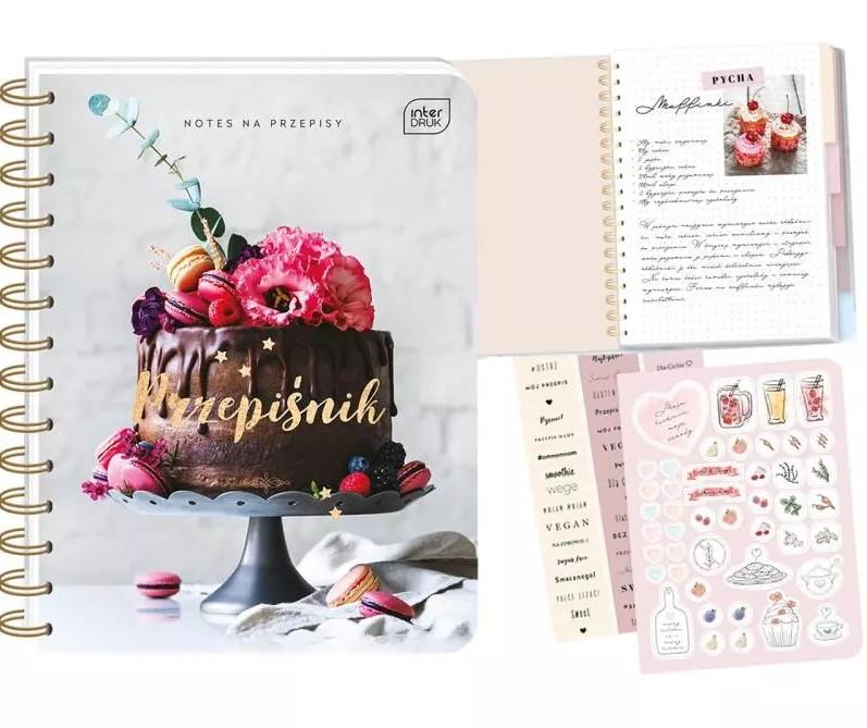 Przepiśnik na spirali od firmy Interdruk, jest idealnym rozwiązaniem dla miłośników kreatywnego gotowania. Idealny prezent dla mamy, babci, siostry czy cioci. Notes na przepisy A5 jest na spirali i ma twardą okładkę. Zmieścisz w nim wiele notatek, które możesz podzielić tematycznie, za pomocą specjalnych przekładek. W środku znajdziesz także kieszonkę na luźne kartki z przepisami czy różne inspiracje W Przepiśniku znajdziemy niezbędnik kuchenny zawierający aż 32 strony nowoczesnych porad kuchennych m.in.: przelicznik miar i wag, przechowywanie warzyw i owoców, kwiaty jadalne, przyprawy i zioła w kuchni. W notesie do przepisów znajdziemy także 90 naklejek do uporządkowania i dekoracji Przepiśnika.