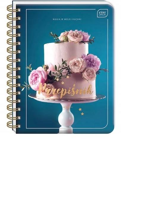 Przepiśnik na podwójnej spirali zamykany w formacie A5. W twardej oprawie ze złotym zdobieniem.
