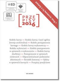 Przepisy 2016. Zbiór karny. Obszerny, ale jednocześnie wygodny w użyciu zbiór przepisów prawa karnego materialnego oraz procedury karnej. Najnowszy stan prawny uwzględniający reformę postępowania karnego, wprowadzoną nowelą wchodzącą w życie 15 kwietnia 2016 r. Akty prawne zawarte w książce to: Kodeks karny, Kodeks postępowania karnego, Kodeks karny wykonawczy, Kodeks wykroczeń i postępowania w sprawach o wykroczenia, Kodeks karny skarbowy, Ustawa o postępowaniu w sprawach nieletnich, Ustawa o odpowiedzialności podmiotów zbiorowych za czyny zabronione pod groźbą kary, Ustawa o opłatach w sprawach karnych. Solidność wykonania oraz ekskluzywność formy graficznej to kolejne zalety zbioru łączącego w sobie estetykę wykonania oraz cenną treść. Zbiór ustaw karnych, przez system przypisów umożliwia łatwe śledzenie zmian prawnych. Zbiór zaopatrzony jest w skorowidz umożliwiający szybkie wyszukiwanie potrzebnych informacji za pomocą hasła tematycznego. Zredagowany został przez doświadczony zespół redakcyjny Wydawnictwa Od.