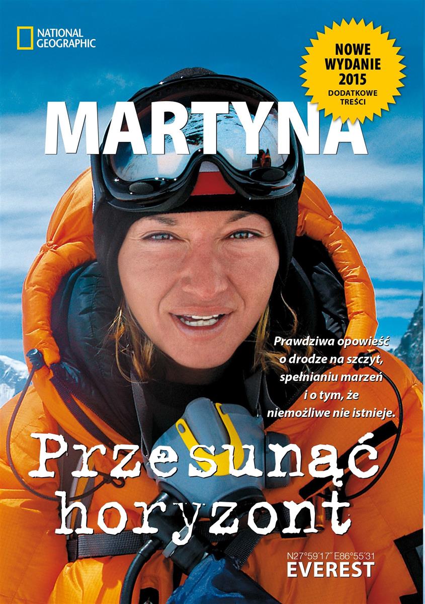 Ta książka to nie tylko historia trudnej wspinaczki na najwyższą górę świata. To opis ekstremalnej podróży w głąb siebie trwającej dwa miesiące walki Martyny z samą sobą i z nieprzewidzianym górskim żywiołem. Przede wszystkim jednak to opowieść o dziewczynie, która po ciężkim wypadku samochodowym i złamaniu kręgosłupa wyznaczyła sobie cel zdobycie Mount Everestu. Nowe – wzbogacone i uaktualnione wydanie. Dla mnie Everest byłby podwójnym zwycięstwem. Kiedy dziesięć lat temu przechodziłam chemioterapię i dwie operacje, lekarze powiedzieli mi: „Pani Martyno, teraz będzie się pani musiała oszczędzać, żyć ostrożniej". Kiedy półtora roku temu uległam wypadkowi, lekarze powiedzieli: „Pani Martyno, teraz będzie pani musiała zrezygnować z większości rzeczy, które pani robiła. Góry, motory, narty teraz musi pani żyć inaczej”. Gdybym zdobyła Everest, to byłoby to dla mnie coś naprawdę wielkiego… I oto tu jestem – Martyna Wojciechowska.Martyna Wojciechowska – dziennikarka, od 8 lat redaktor naczelna polskiej edycji magazynów „National Geographic” i „NG Traveler”. Od 1998 roku związana z telewizja TVN, dla której zrealizowała ponad 50 odcinków autorskiej serii podróżniczej „Kobieta na krańcu świata", która emitowana jest w 10 krajach na świecie. Jako druga Polka zdobyła Koronę Ziemi (Mount Everest w 2006 roku), jako pierwsza kobieta z Europy Środkowo-Wschodniej ukończyła rajd Dakar. Autorka 10 bestsellerowych książek. Wielokrotnie nagradzana prestiżowymi nagrodami m.in. wybrana przez BBC Knowledge najbardziej pożądanym pracodawca, Kobieta Roku 2009, Osobowość Roku 2011 i 2014, Najbardziej Wpływowa Kobieta roku 2014 w kategorii Media w rankingu „Gazety Wyborczej”, laureatka Wiktora 2014 w kategorii Wyjątkowa Osobowość, zdobywczyni nagrody za najlepszy projekt książkowy roku 2014 w plebiscycie National Geographic Society w Waszyngtonie. Laureatka Złotej Nimfy za dokument „Ludzie Duchy” na festiwalu w Monte Carlo. Mama 7-letniej Marysi.