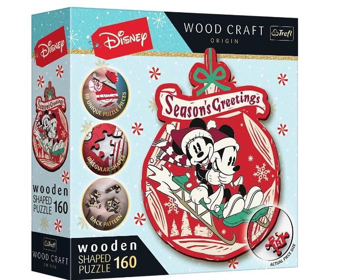 Puzzle drewniane to wyjątkowa propozycja dla miłośników bajek Disneya i świątecznego klimatu. Te klimatyczne puzzle składają się z 160 elementów, w tym z 10 unikatowych figurek puzzlowych nawiązujących do świata Mickey Mouse. Układanka została wykonana z drewna, a opakowanie z przyjaznej dla środowiska tektury.