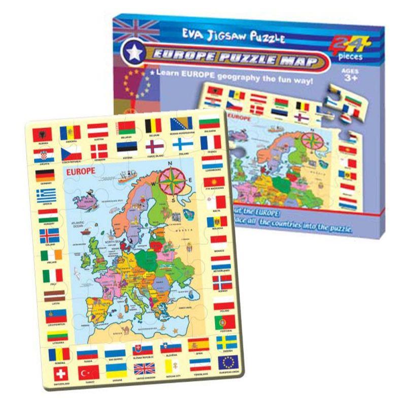 zawartość pudełka: 24 puzzle z mapą Europy wiek: 3+