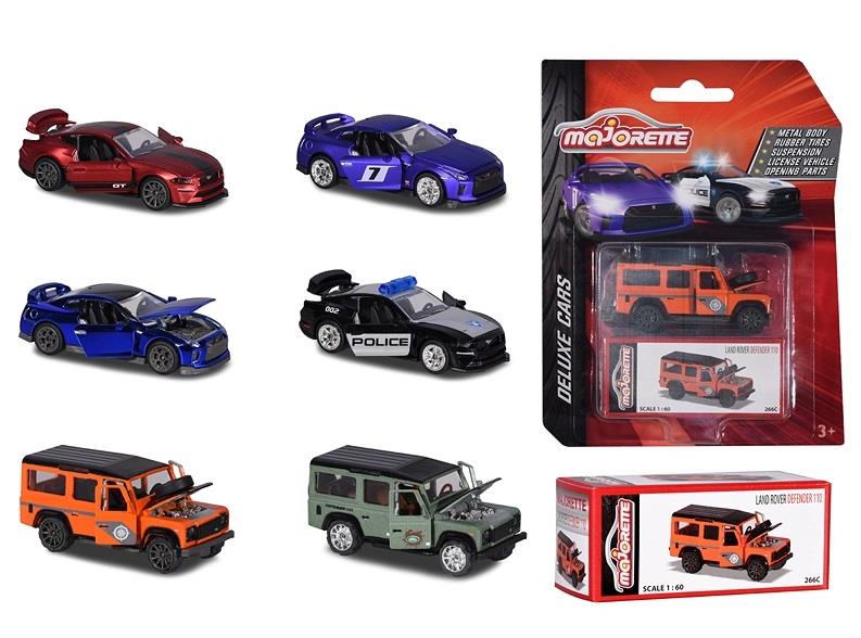 Samochody Deluxe, 6 rodzajówLinia Deluxe to samochody na licencji znanych marek, posiadają dwa otwierane elementy, metalowe nadwozie, gumowe opony, resory, ekskluzywna dekoracja, pudełko kolekcjonera.