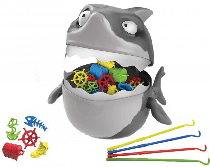 Sprawdź swoje umiejętności połowowe i refleks przeciwko Shaky Shark! Ten głodny rekin trzęsie się i chwieje, próbując wyłowić kawałki z jego ust - uważaj albo on ugryzie twoją rękę! Musisz poruszać się szybko: licznik odlicza minuty, aż rekin zrzuci twoją wędkę! Kto zdoła wydobyć jak najwięcej kawałków z ust rekina?