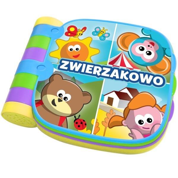 Książeczka Zwierzakowo Mówi po polsku. Książeczka do czytania i opowiadania. Książeczka ma 3 strony z bajkowymi rymowankami. Zabawka czyta wierszyki. Można także razem z dzieckiem rozwijać historyjki, opowiadać, co przedstawione jest na obrazkach. Zabawka zawiera zróżnicowane 3 rymowanki. Historyjka o misiu pomaga zrozumieć dziecku chęć i trudność bycia samodzielnym. Rymowanka o koniku wprowadza wesoły, ?energetyczny nastrój, a znany wierszyk ?Ślimak, ślimak pokaż rogi jest okazją do ćwiczenia pamięci. Dzieci chętnie zapamiętują śmieszne rymowanki. Na każdej stronie są ruchome okienka. Kiedy dziecko porusza nimi , zabawka wydaje odgłosy. Jeśli dziecko chce zatrzymać na chwilę historyjkę i powtórnie posłuchać jej fragmentu, zamyka okienko podczas czytania. Takie interaktywne czytanie daje mnóstwo radości.