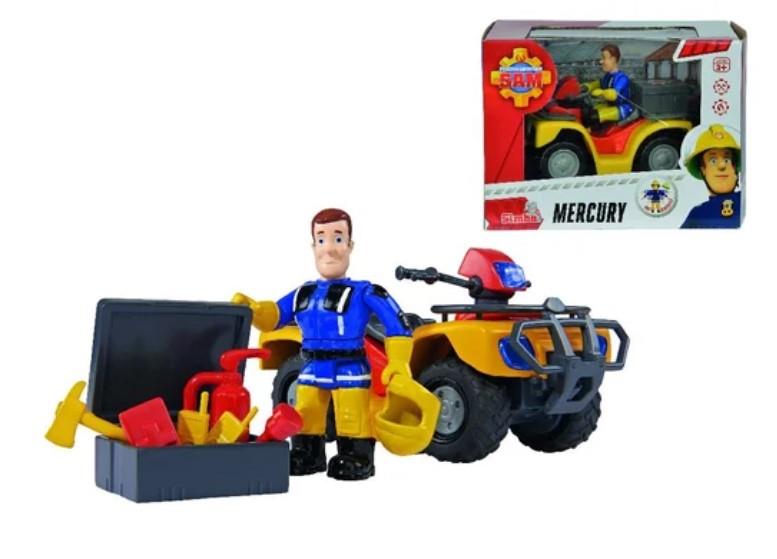 Pogądowe zdjęcie produktu. Opakowanie posiada niewielkie uszkodzenia. Produkt może mieć uszkodzone opakowanie lub naruszoną plombę fabryczną opakowania. Uszkodzenia nie wpływają na funkcjonowanie produktu. wzorowane na postaci znanej z bajki figurka Strażaka Sama z Quadem Mercury wykonane z trwałych materiałów quad posiada skrzynię zestaw zawiera dodatkowe akcesoria potrzebne do zabawy w strażaka figurka ze zdejmowanym kaskiem rozwija wyobraźnięUwaga! Produkt nieodpowiedni dla dzieci poniżej 3 roku życia.
