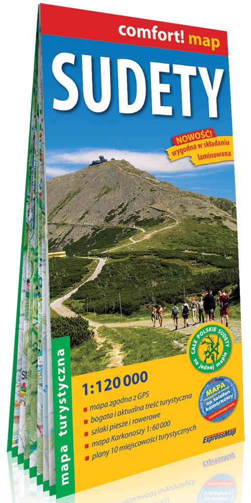 Całe polskie Sudety na jednej mapie turystycznej w skali 1:120 000. Dodatkowo mapa Karkonoszy w szczegółowej skali 1:60 000 (1 cm - 600 m) oraz plany dziesięciu miast: Świeradowa-Zdroju, Szklarskiej Poręby, Karpacza, Kudowy-Zdroju, Dusznik-Zdroju, Polanicy-Zdroju, Kłodzka, Bystrzycy Kłodzkiej, Lądka-Zdroju, Głuchołazów. Publikacja została opracowanej we współpracy z krajoznawcami z regionu.
