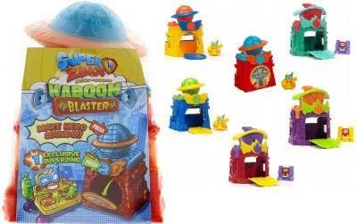 Odkryj tajne bazy SuperZingsów, które wydają prawdziwe dźwięki! Naciśnij górną część, by usłyszeć dźwięki dobywające się ze środka. Co knują złoczyńcy? Do zebrania są dwa rodzaje 2 Kaboom Blaster w 3 różnych wersjach kolorystycznych, a każdy z nich zawiera ekskluzywną figurkę SuperZings - SuperZłoczyńcę Beatboxa lub SuperBohatera DJ Scratcha. Przygoda trwa!