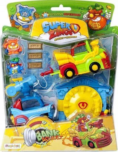 Misja Napad na bank to wyjątkowy zestaw z 5 serii Super Zings. Rywalizujący ze sobą bohaterowie zmierzą si w banku. Czy uda Ci si ochronić skarbiec przed złodziejem? Wykorzystaj pojazdy, aby atakować lub bronić. Zestaw rozwija kreatywność i wyobraźni dziecka.