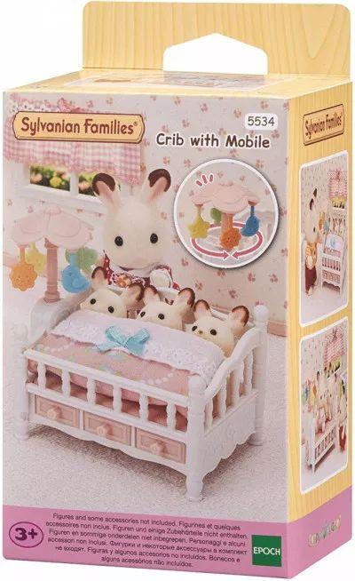 W łóżeczku z karuzelą Sylvanian Families małe dzieci i trojaczki mają słodkie sny. Obracając kwiatek na końcu łóżeczka wprawiamy w ruch wesołą karuzelkę. Kratkę z boku łóżeczka można opuszczać i podnosić, a w szufladach zmieszczą się drobne akcesoria dziecięce. Zestaw zawiera łóżeczko z karuzelą oraz kołderkę. Zestaw łóżeczko z karuzleką Sylvanian Families można połączyć z innymi zestawami, domkami, meblami i akcesoriami Sylvanian Families. Zabawki Sylvanian Families wyróżnia najwyższa jakość wykonania oraz miłość do szczegółów. Figurki uroczych zwierzątek Sylvanian Families pokryte są jedwabistym futerkiem i mają ruchome główki, rączki i nóżki. Zabawki Sylvanian Families polecamy dla dzieci od 3 roku życia