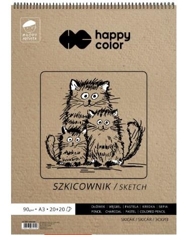 szkicownik na spirali Młody Artysta, Happy Color format: A3 posiada: 40 arkuszy gramatura papieru: 80-90 g/m2