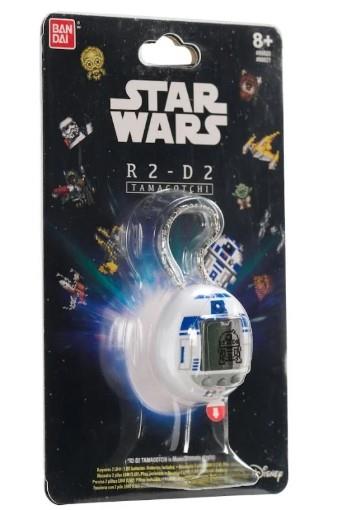 Tamagotchi R2-D2 to połączenie zabawy Tamagotchi ze światem popularnej serii Star Wars. Występują nowe, wyjątkowe obudowy nawiązujące do serii Star Wars i R2-D2. Zabawa Tamagotchi również wzbogacona jest o historię ze świata Star Wars oraz o nowe sposoby interakcji z uwielbianym przez fanów R2-D2. Grupa docelowa to fani Star Wars. Tamagotchi Star Wars R2 D2 występuje w dwóch wersjach, klasycznej i holograficznej. Rozwój i szkolenie postaci: - fabryka droidów - R2-D2 - tryb specjalizacji i zdolności - A Tryb drugiego pilota - B Tryb specjalny Szkolenie i obsługa R2-D2 - szkolenie przypomina opiekę nad tradycyjną postacią Tamagotchi. Dopilnuj, by R2-D2 był szczęśliwy: - naładuj (karmienie) - wytrzyj (dobry nastrój) - brudny (czyszczenie) - tryb snu - pożegnanie (zabrany przez Jawów) Minigry - dwie domyślne minigry i siedem minigier do odblokowania: - gaszenie pożaru - dejarik (szachy holograficzne) - dopasowywanie X-wingów - chwytanie miecza świetlnego - otwieranie drzwi - zabawa z Yodą - pułapka Ewoków - unikanie meteoroidów lub myśliwców TIE - łapanie alfabetu
