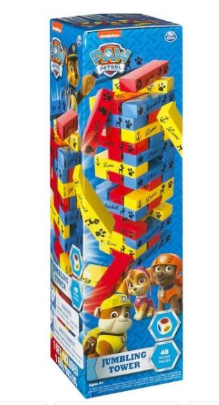 wzorowana na popularnej bajce Psi Patrol gra polega na wyciąganiu kolejno drewnianych klocków z dolnej lub środkowej części wieży dane szczegółowe- zabawka od 4. roku życia- w skład zestawu wchodzi: 48 drewnianych klocków, 1 kostka, 1 instrukcjaProdkut może mieć uszkodzone opakowanie lub naruszoną plombę fabryczną opakowania. Uszkodzenia nie wpływają nafunkcjonalność produktu.