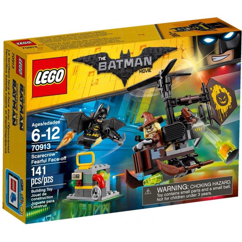 W zestawie dwie minifigurki: Strach na Wróble i Batman™. Żyrokopter Stracha na Wróble ma obrotowe wirniki z tyłu i na górze, ruchomy ster kierunku oraz funkcję zrzucania dwóch bomb. W zestawie znajdziesz także trzy zielone, przezroczyste bomby z gazem przerażającym. Miniaturowy model elektrowni ma miejsce na klocek bomby z gazem przerażającym oraz funkcję eksplozji. W zestawie jest też rakietowy plecak Batmana ze skrzydłami nietoperza i dwoma ruchomymi silnikami, które wyrzucają z siebie przezroczyste płomienie. Zestaw zawiera też miotacz liny z hakiem Batmana.