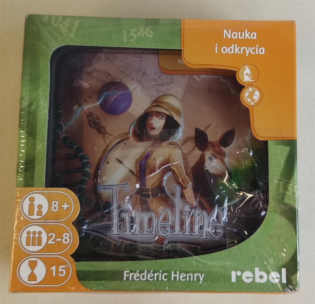 Wraz z grą karcianą Timeline poznasz odpowiedzi na te, oraz tysiące innych pytań, konfrontując swą wiedzę i domysły z faktyczną chronologią. Jednak pamiętaj, nie musisz znać faktycznych dat odkryć! Do zabawy potrzeba jedynie trochę logiki, rozsądnego myślenia i gotowości do dobrej zabawy! :) Na początku gry, wszyscy uczestnicy otrzymują taką samą liczbę kart, reprezentujących rozmaite odkrycia naukowe i historyczne. Na odwrocie każdej karty znajduje się data. Rozgrywka rozpoczyna się od położenia na środku stołu jednej, losowo wybranej karty (z talii pozostałych, nieprzydzielonych graczom kart). Kartę tą należy położyć datą do góry, będzie ona punktem wyjścia do chronologicznej linii, która podczas rozgrywki będzie stopniowo budowana przez graczy. Każdy gracz w swojej turze wybiera jedną z trzymanych na ręku kart i umieszcza ją na lewo, lub na prawo od karty początkowej, zależnie od tego, czy uważa że data odpowiadająca zawartości karty jest wcześniejsza, czy późniejsza od daty początkowej. Następnie dokonuje się sprawdzenia, czy gracz miał rację. Jeśli tak, karta pozostaje na stole, w przeciwnym razie jest odrzucana, zaś gracz zmuszony jest pociągnąć nową. Czynność powtarzana jest przez kolejnych graczy zgodnie z ruchem wskazówek zegara. Im więcej kart na stole, tym trudniej jest poprawnie umieścić kolejną kartę. Wygrywa gracz, który jako pierwszy zdoła pozbyć się wszystkich kart.