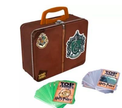 Wsiądź do Hogwarts Express z metalową walizką Slytherin. To wyjątkowe wydanie gry zawiera dwie talie kart Top Trumps: Harry Potter i Insygnia Śmierci część 1 oraz Harry Potter i Insygnia Śmierci część 2 w kolekcjonerskiej puszce. Podążaj śladami ulubionych uczniów Hogwartu.