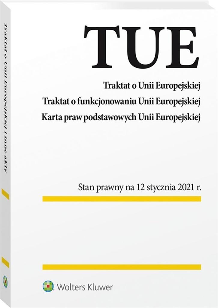 Stan prawny na: 12.01.2021 r.Publikacja zawiera przepisy Traktatu o Unii Europejskiej i Traktatu o funkcjonowaniu Unii Europejskiej, wraz ze wszystkimi protokołami, załącznikami i deklaracjami oraz tabelami ekwiwalencyjnymi, a także tekst Karty praw podstawowych Unii Europejskiej.W zbiorze uwzględniono m.in.:rozporządzenie Parlamentu Europejskiego i Rady (UE, Euratom) 2019/629 z 17 kwietnia 2019 r. zmieniające Protokół nr 3 w sprawie Statutu Trybunału Sprawiedliwości Unii Europejskiej,decyzję Rady (UE) 2019/1255 z 18 lipca 2019 r. zmieniającą Protokół nr 5 w sprawie Statutu Europejskiego Banku Inwestycyjnego,decyzję Rady (UE) 2020/135 z 30 stycznia 2020 r. w sprawie zawarcia umowy o wystąpieniu Zjednoczonego Królestwa Wielkiej Brytanii i Irlandii Północnej z Unii Europejskiej i Europejskiej Wspólnoty Energii Atomowej.Książka jest przeznaczona dla prawników praktyków, jak również dla studentów wydziałów prawa oraz osób zainteresowanych prawem unijnym. Egzemplarze powystawowe - mogą zawierać zbite rogi, rozdarcia, przybrudzenia,rysy.