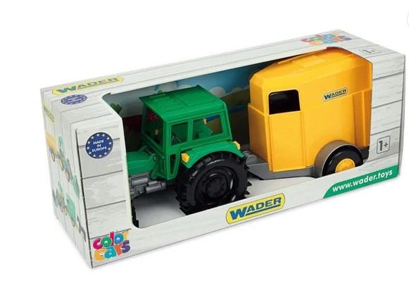 Traktor z serii Color Cars z przyczepą na konia. Pojazd charakteryzuje się realistycznym odwzorowaniem, solidnym wykonaniem, lekkością i wytrzymałością konstrukcji oraz łatwością sterowania. W zestawie znajduje się otwierana przyczepa z rozkładanym najazdem i figurka konia. Traktor posiada ruchome elementy uatrakcyjniające zabawę, takie jak podnoszona kabina i maska oraz skrętną przednią oś. Zabawa traktorem z przyczepą poszerzy informacje najmłodszych o otaczającym świecie, nasze pociechy dowiedzą się jak przebiega transport zwierząt oraz szybko przetransportują swoje figurki zwierząt po domu lub zabiorą je na wycieczkę do parku czy na podwórko.